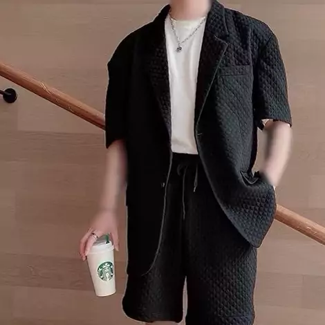 کت و شلوارک وارداتی جنس کار پفکی میباشد کت دارای یقه انگلیسی و دارای دو دکمه و دو جیب میباشد شلوارک کمر کش و از جنس پفکی میباشد