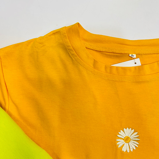 کراپ بابونه از جنس سوپر پنبه وارداتی دارای بابونه گلدوزی شده در وسط سینه استین کوتاه و یقه گرد میباشد