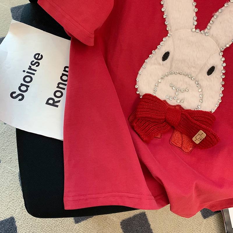 تیشرت پنبه گرم بالا وارداتی بروی کار خرگوش تدی گلدوزی شده است و دارای شالگردت از جنس بافت برجسته میباشد طرح کار کلا برجسته و قابل لمس است