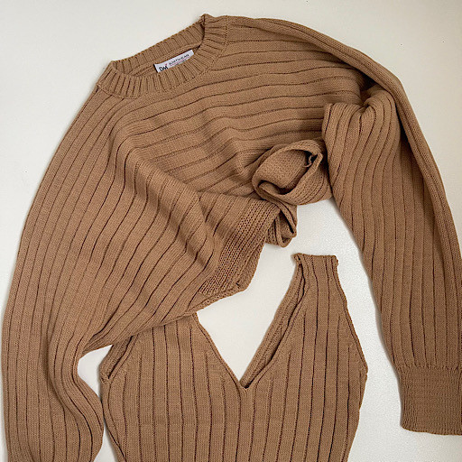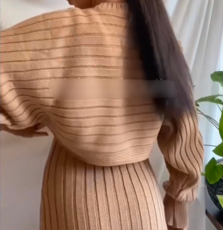 ست دو تکه سارافون و کراپ بافت ترکیه