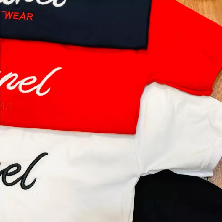 تیشرت سوپر پنبه ایرانی دارای گلدوزی چنل بروی سینه آستین کوتاه گشدوزی شده از جنس مرغوب دور یقه کشدوزی شده از جنس مرغوب لبه پایین کار گرددوزی شده دارای سایزبندی دارای رنگبندی